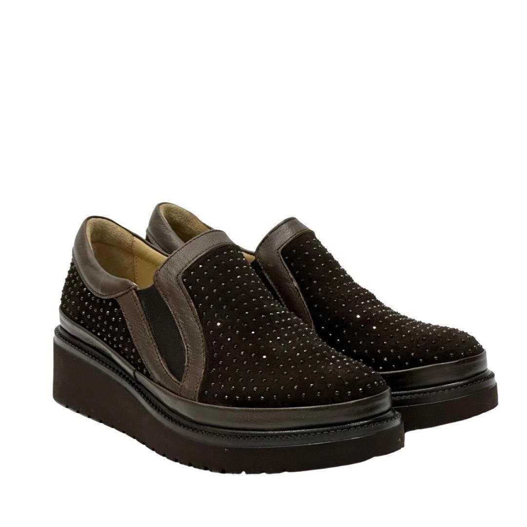 Hakiki Deri 4 Cm Dolgu Topuklu Full Taş Detaylı Rahat Ayakkabı (24SKO000006)