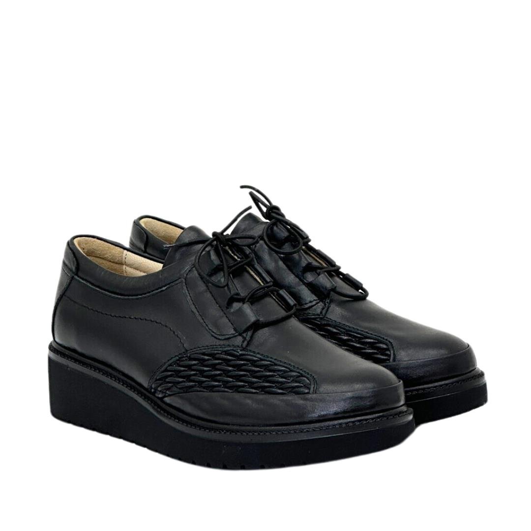 Hakiki Deri 4 Cm Dolgu Topuklu Özel Kemik Detaylı Bağçıklı Rahat Ayakkabı (24SKO000001)