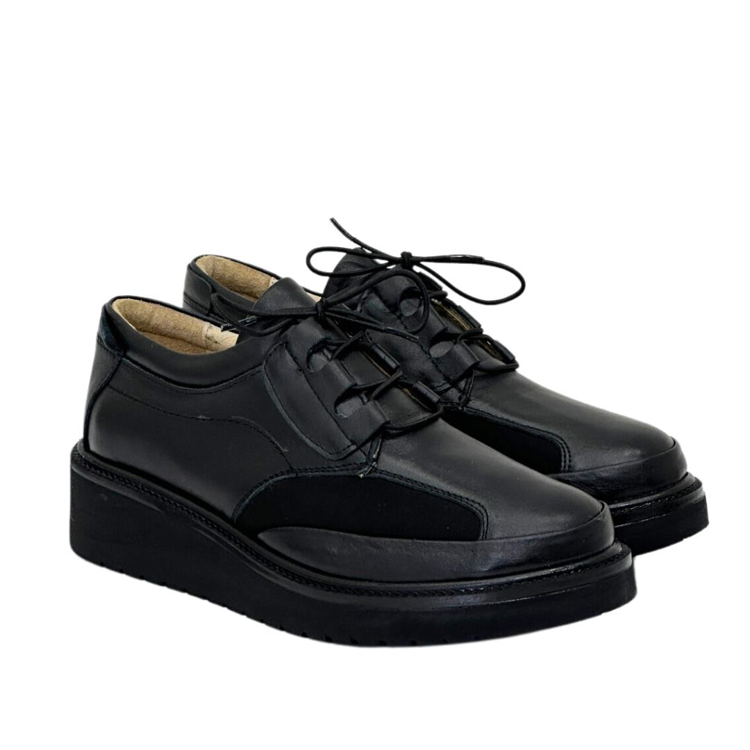 Hakiki Deri 4 Cm Dolgu Topuklu Özel Kemik Detaylı Bağçıklı Rahat Ayakkabı (24SKO000004)