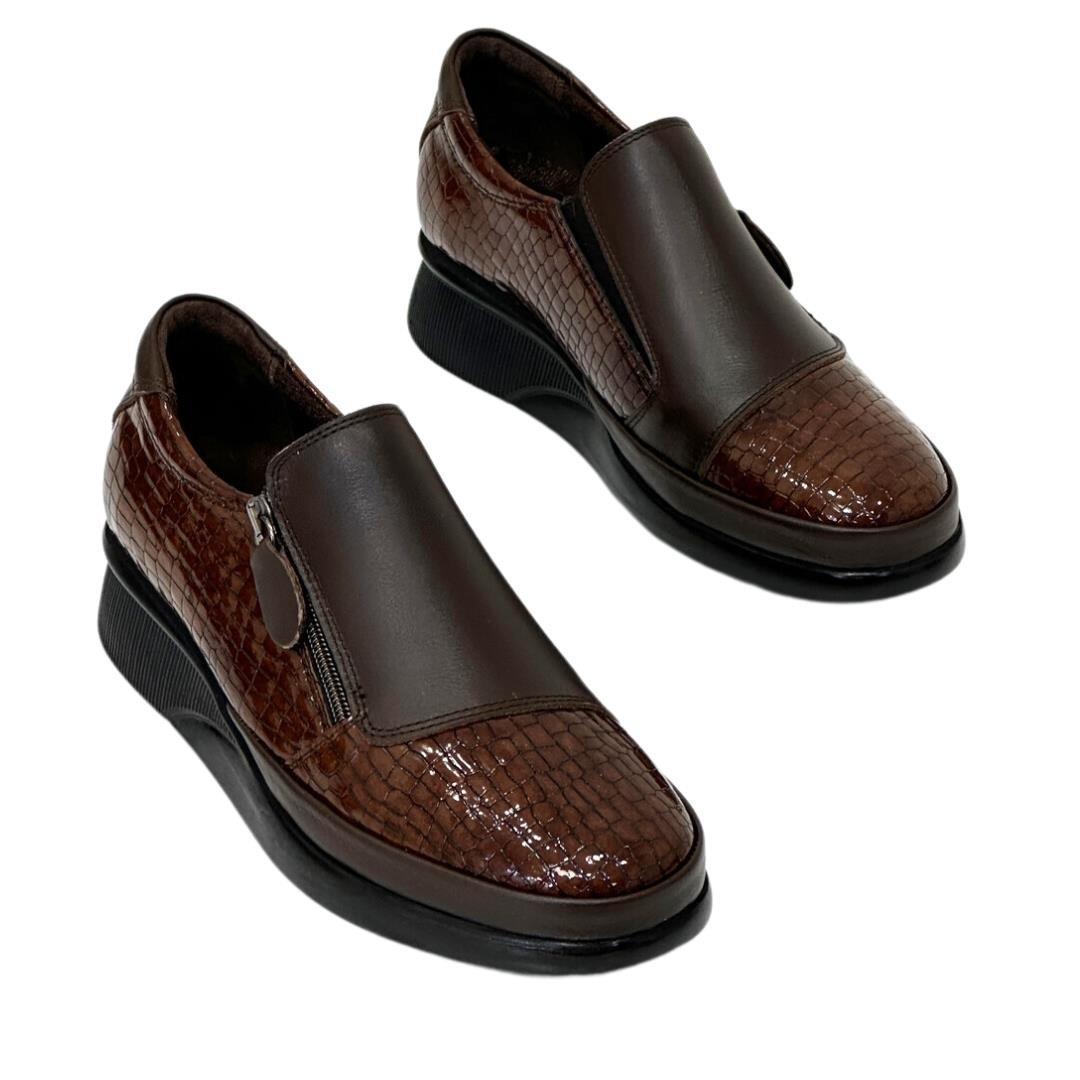 Hakiki Deri Petek Baskılı Dolgu Topuk Rahat Ayakkabı (25YIO000012)