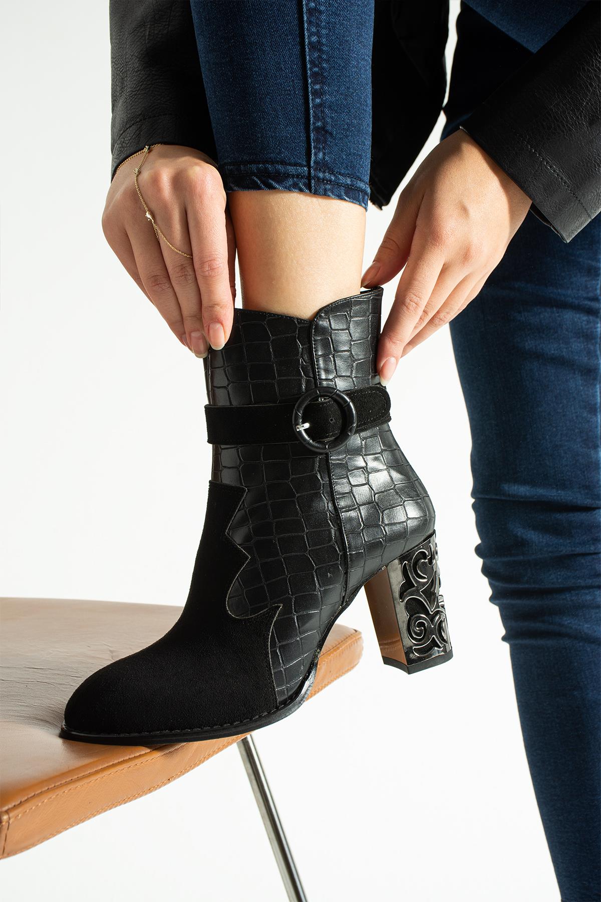 Kroko Detaylı Tasarım Topuklu Bot